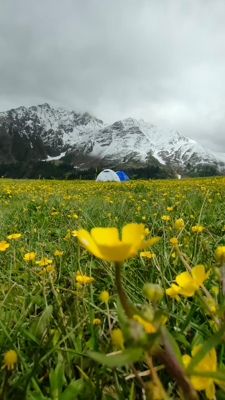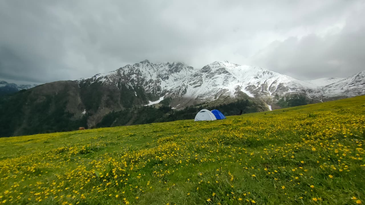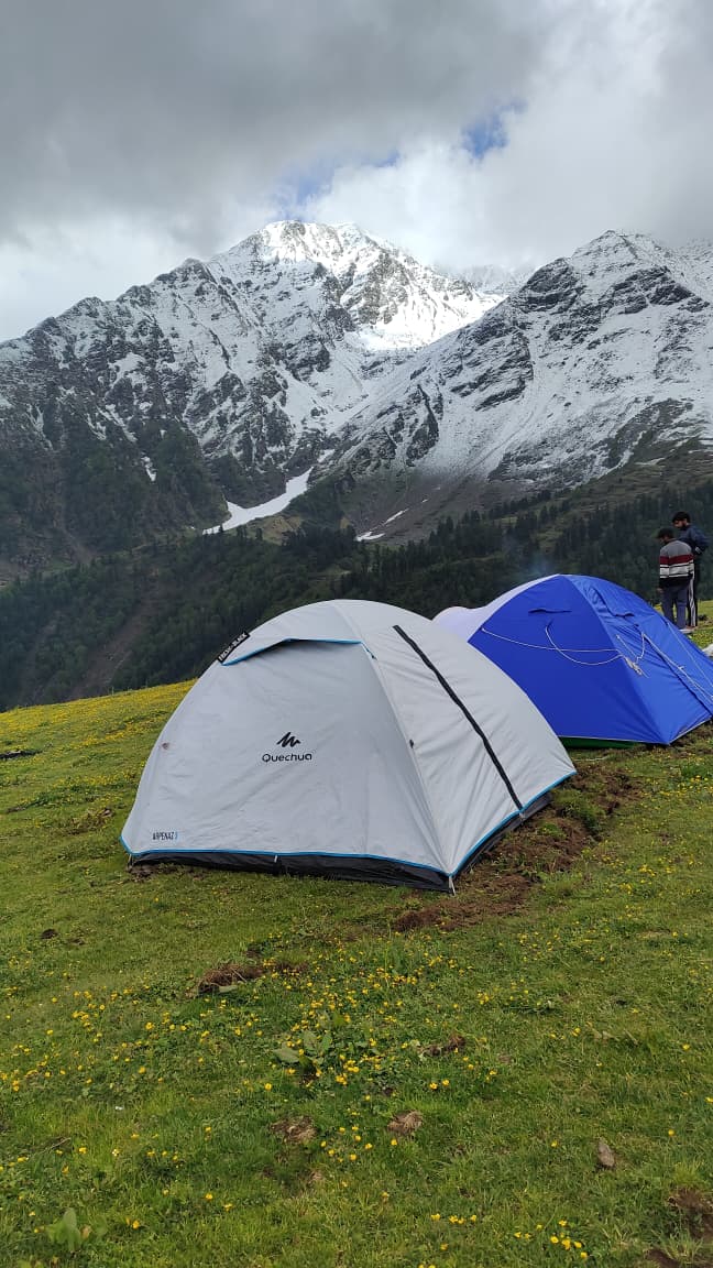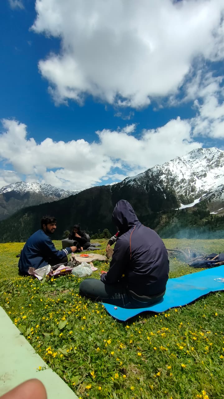 The campsite at Pustara Bugyal is one of the major highlights of this trek. Situated at an altitude of about 3,350 meters, it offers stunning sunrise and sunset views. As the golden light falls on the surrounding peaks, the meadow comes alive in vibrant hues, creating the perfect backdrop for trekkers, photographers, and nature lovers.