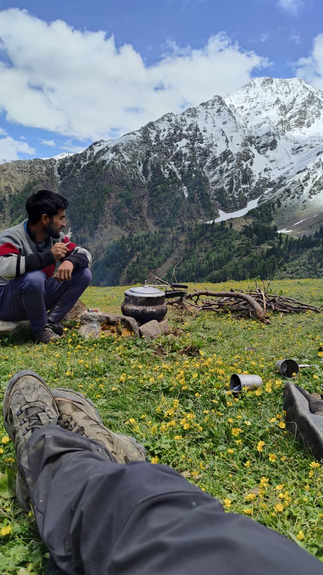The campsite at Juda Ka Talab is one of the most picturesque on the trail, with a flat clearing for tents, a natural water source, and an ideal setup for stargazing at night. After setting up camp and having a hot lunch, take some time to explore the lake surroundings or relax and acclimate to the higher altitude.